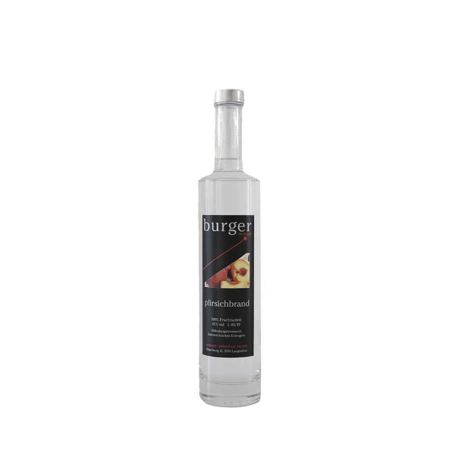 Dieser Brand stammt von unseren Bäumen am Betrieb. Weingartenpfirsich, gelbe Pfirsiche und weiße Pfirsich zusammen geerntet und als Brand veredelt.